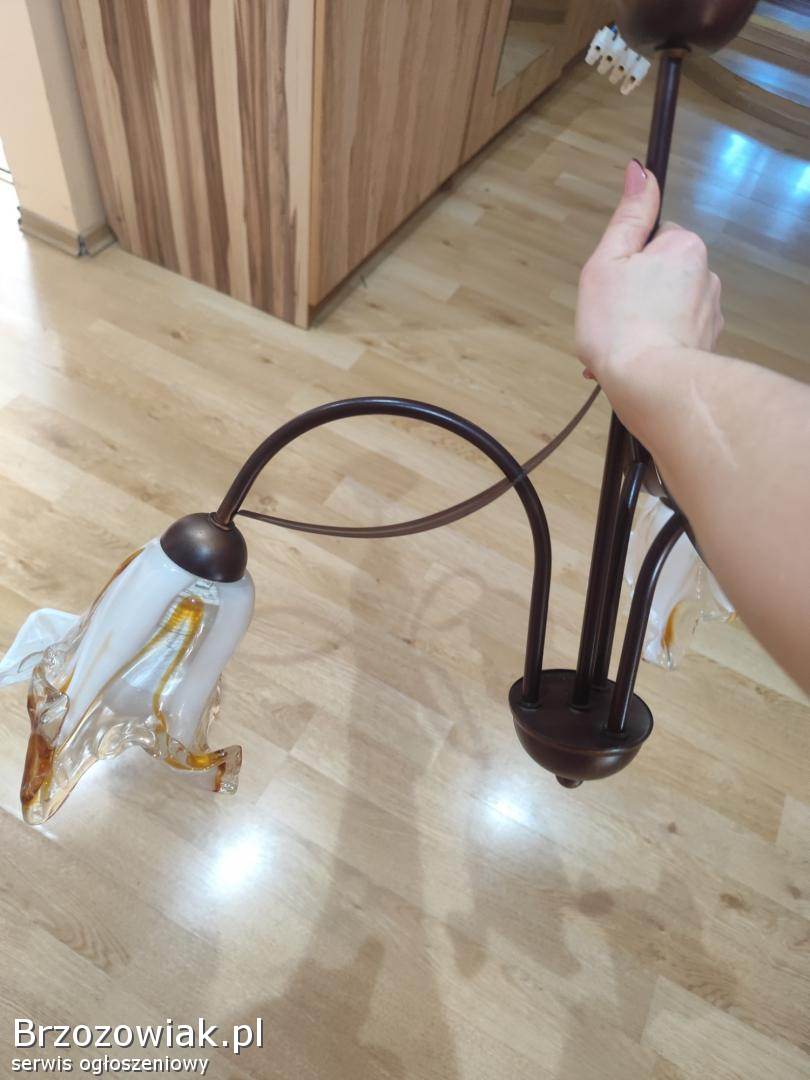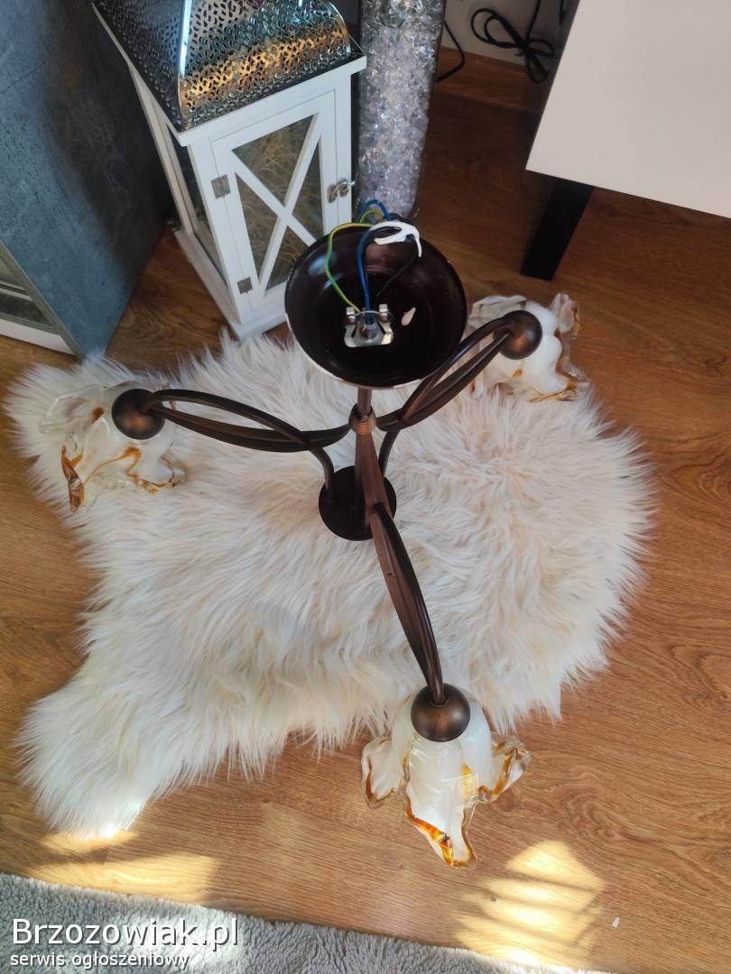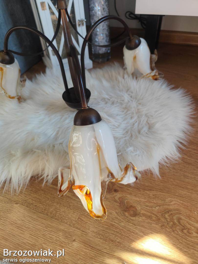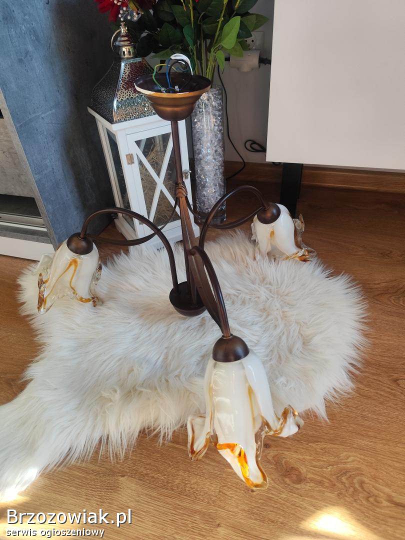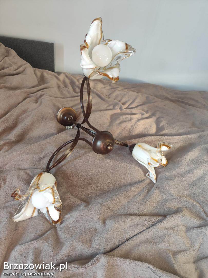 Piękny trójgłowy żyrandol w kwiaty, idealny stan