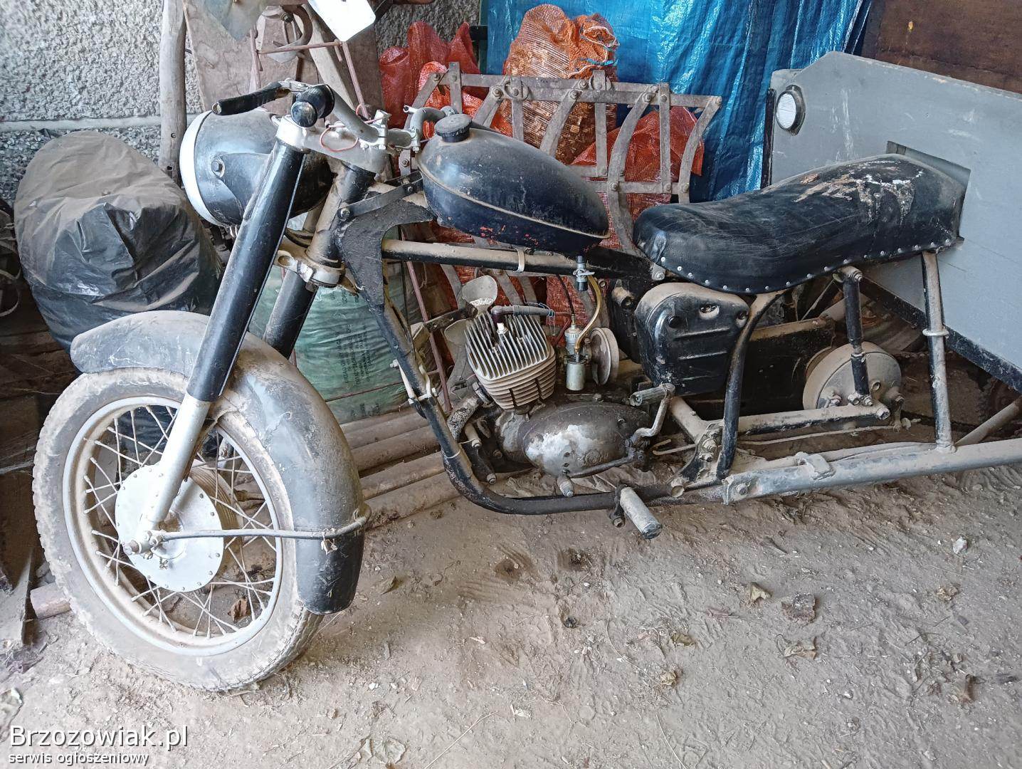 Trójkołowiec z silnikiem wsk, reszta pannonia. Rama motocykla nie była cięta, konstrukcja trójkołowca jest przykręcana. Możliwość przywrócenia motocykla. Mam oryginalny zbiornik. Latem odpalał. Mogę zamienić silnik na oryginalny z tego motocykla mam go w częściach.
