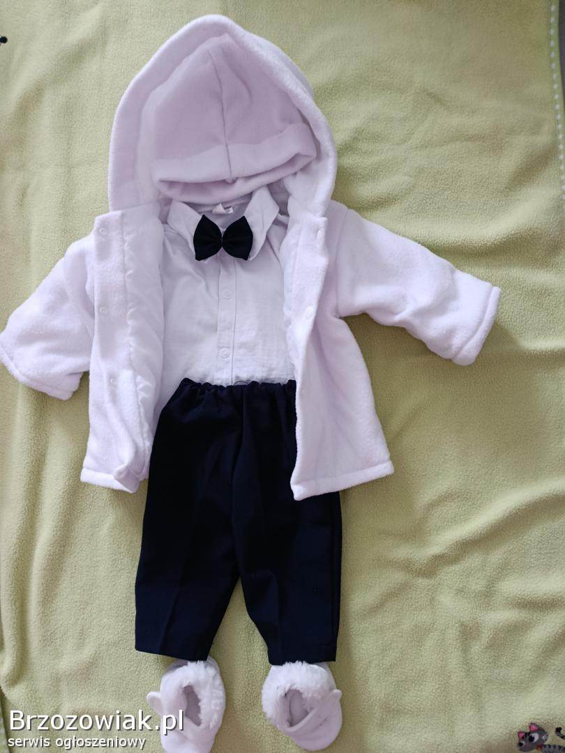 Sprzedam ubranko do chrztu dla chłopca rozmiar 68. W skład zestawu wchodzi koszulobody, muszka, spodnie, buty, czapeczka i kurteczka. Odbiór osobisty.