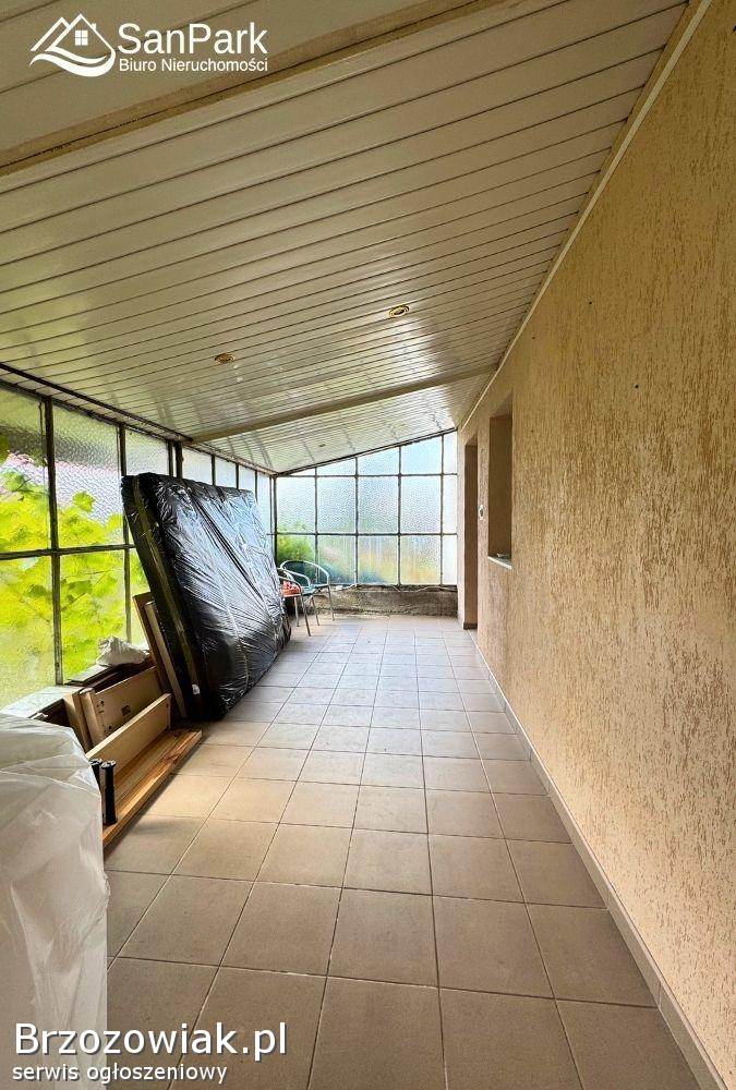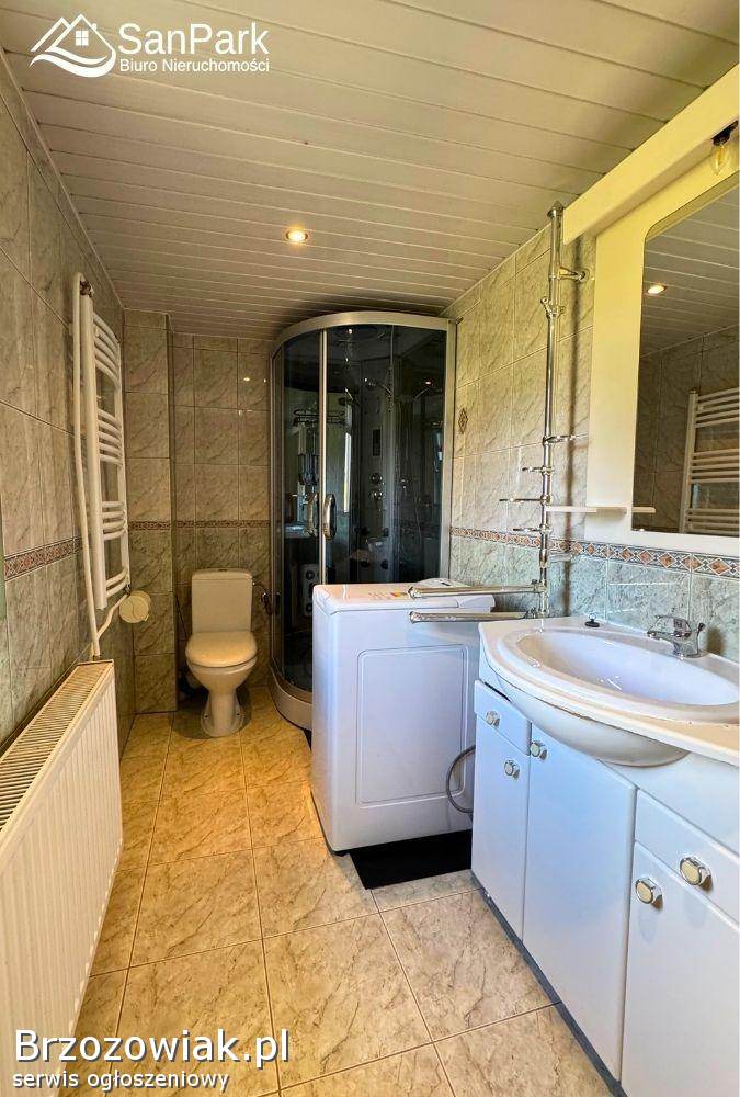 Działka o powierzchni 20 arów jest ogrodzona siatką, a jej lekko nachylone ukształtowanie dodaje uroku i pozwala na ciekawe zagospodarowanie terenu. Znajduje się tu murowany garaż oraz szklarnia, idealna dla miłośników ogrodnictwa. W dolnej części posesji istnieje możliwość dodatkowej zabudowy, co otwiera szerokie możliwości dla nowych właścicieli.