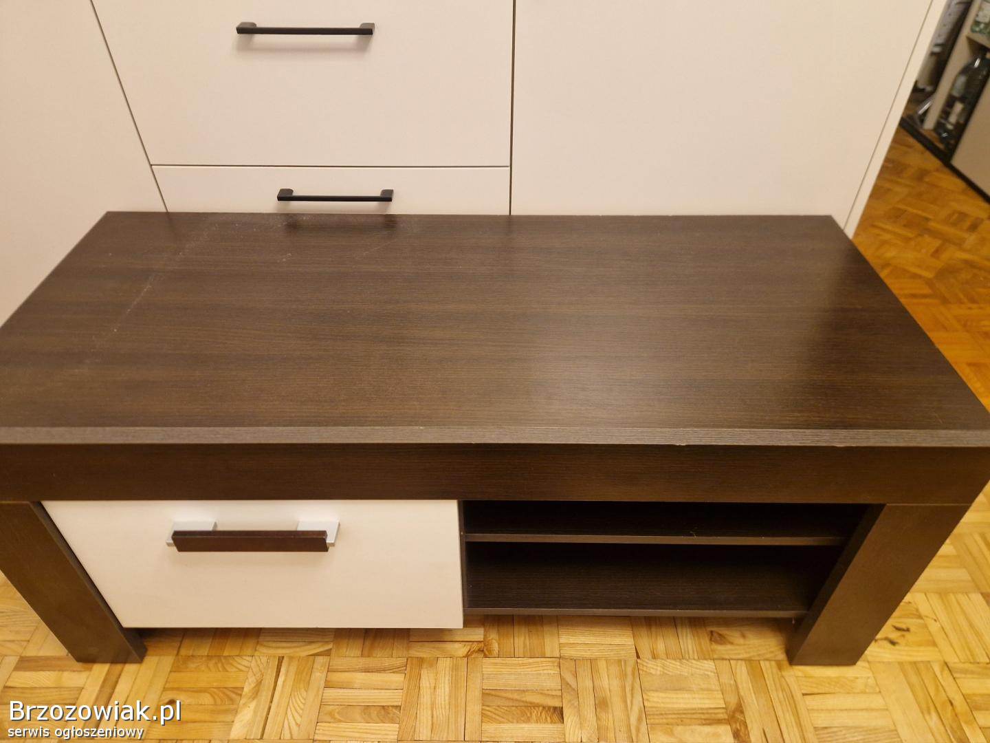 Używana szafka pod tv z serii CEZAR. Zakupiona jako nowa w zestawie w 2017 r. Pierwszy właściciel. Długość: 120 cm, wysokość: 50 cm, głębokość: 52 cm. Wysoką jakość materiałów. Uszkodzony jeden zawias w drzwiczkach, do naprawy. Usterka nie widoczna z zewnątrz, można bez problemów otwierać i zamykać drzwiczki. Z tyłu otwór na kable do tv. Stan określam jako dobry. Widoczna normalna eksploatacja. Do tego mebla w zestawie do kupienia jeszcze szafa‐regał oraz komoda. Cena 110 zł za ten jeden mebel. W przypadku kupienia całości (3 elementów) możliwość negocjacji ceny.