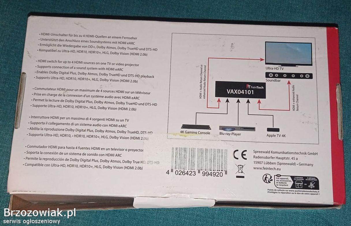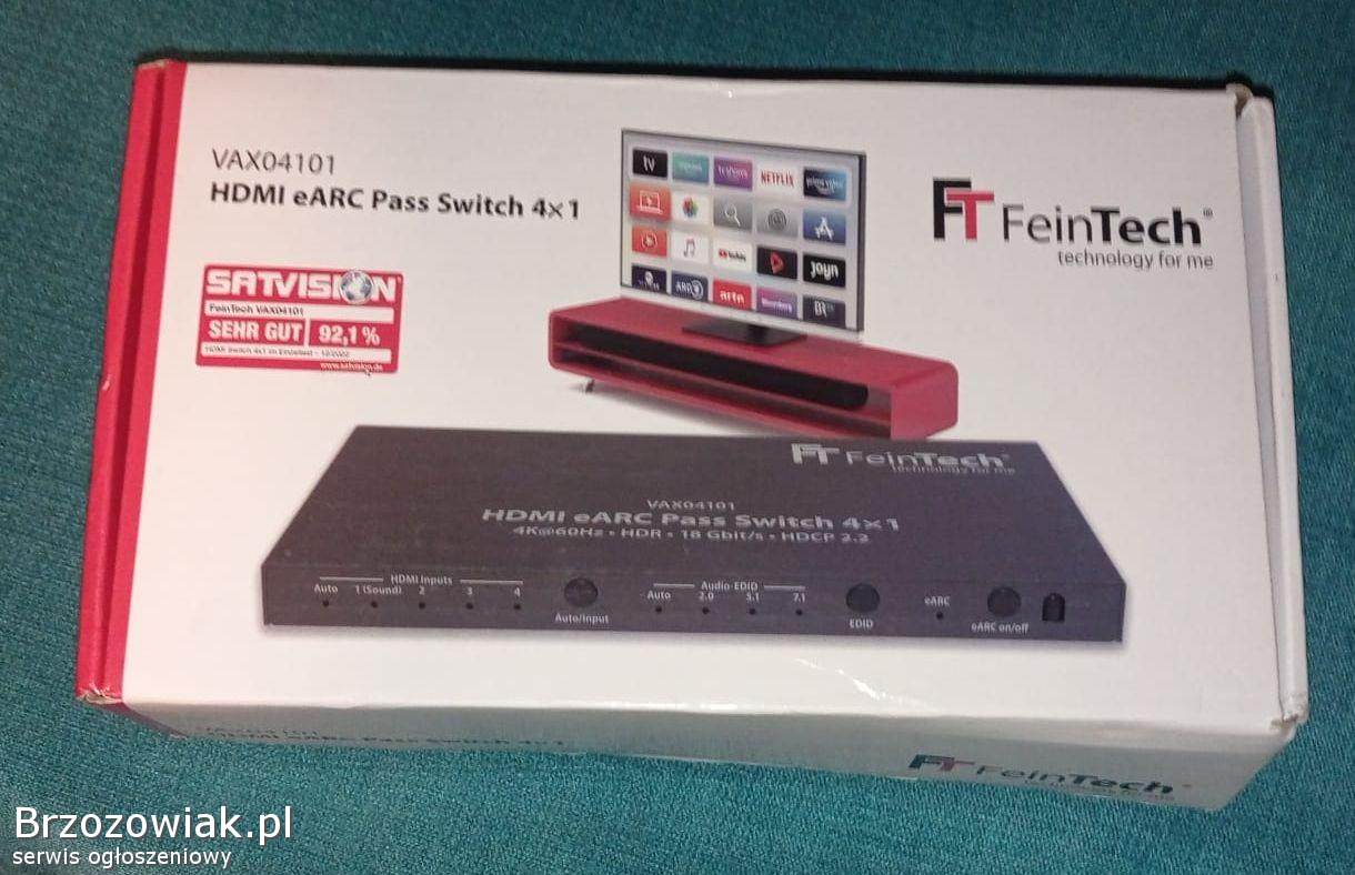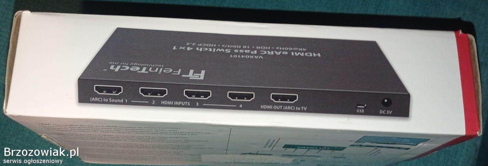 Przełącznik HDMI eARC Pass 4x1 firmy VAX04101 zapewnia płynne przełączanie między różnymi urządzeniami audio. Doskonały do podłączenia soundbara i innych akcesoriów audio do telewizora. Wspiera technologię eARC, co gwarantuje przesyłanie dźwięku o wysokiej jakości.