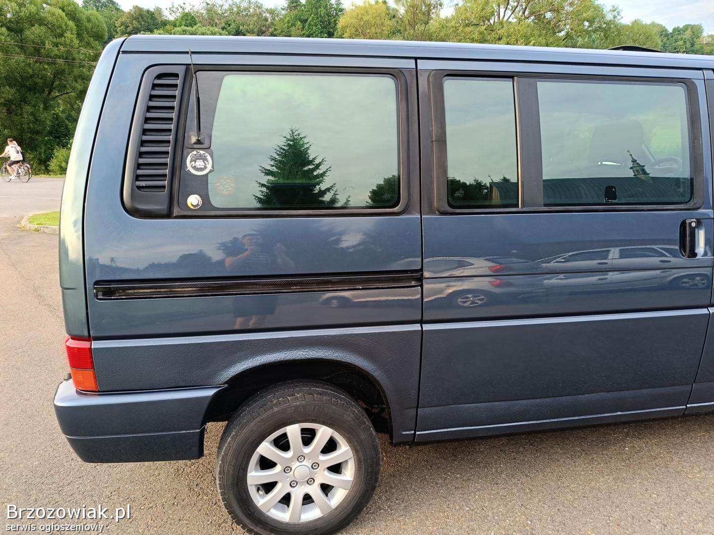 Sprzedam VW Caravelle 2. 4 diesel 1994 rok. Wyposażenie: centralny zamek, elektryczne lusterka i szyby przód elektryczny szyberdach z roletą, alufelgi, nawiewy na każdy rząd siedzeń, hak. Mam jeszcze kamerę cofania do zamontowania. Caravelle zarejestrowany jest na 7 osób. Co najważniejsze blacharka w tym aucie została zrobiona a wszystko zabezpieczone i pomalowane do linii błotnika także tylnia klapa. Zrobiona zostala cała konserwacja spodu, zrobione hamulce przód i tył, wymieniony olej oraz wszystkie filtry, pomalowane alufelgi, wymienione koło zapasowe oraz całe audio na nowe. Rozrząd wymieniony bodajże przy 405 tys. Wymagało to dużo pracy i pieniędzy ale było warto bo autko teraz wygląda bardzo dobrze, oczywiście nie jest to nowy samochód i pewnie coś tam się znajdzie do poprawy Zapraszam bo jest to znakomita baza na zrobienie go na np. na kampera