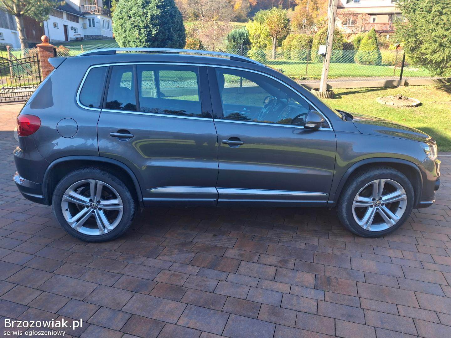 VW Tiguan 2. 0 Diesel, 177 KM, 2013r. , R - Line, przebieg 202400 km, lakier oryginalny, kolor szary - peper grey, auto bezwypadkowe. W 2024r wymieniono rozrząd, olej w automatycznej skrzyni biegów, wyczyszczono filtr DPF. Ubezpieczenie jak i przegląd techniczny ważne do lutego 2026r. Wyposażenie auta to m. in. : napęd 4x4; automatyczna skrzynia biegów DSG 7 stopniowa; bixenon skrętny; doświetlanie zakrętów ; światła led; tylne światła w technologi led; panoramiczny dach, szyberdach z elektryczną roletą; skórzana tapicerka; alufelgi 19” R-line; tempomat; kamera cofania; automatyczna zmiana świateł; hak wysuwany; bezkluczykowe otwieranie i uruchamianie pojazdu keyless-go; asystent stromych podjazdów, 4x el. szyby, kierownica multifunkcyjna; łopatki zmiany biegów przy kierownicy; 10x poduszka powietrzna, kurtyny powietrzne; fotel kierowcy regulowany el; podgrzewane przednie fotele; tylnie fotele kanapy przesuwne z regulacją kąta oparcia; czujnik zmierzchu; czujnik deszczu; ABS; ESP; drugi komplet kół zimowych na alufelgach 17.