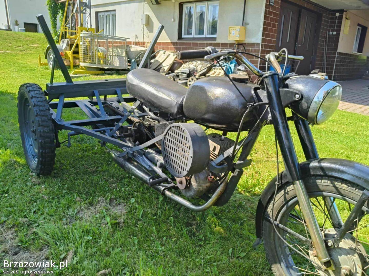 Trójkołowy odmalowany wymieniony cylinder tłok i gaźnik. wszystko chodzi pali i jeździ. Dodatkowa skrzynia z żuka.