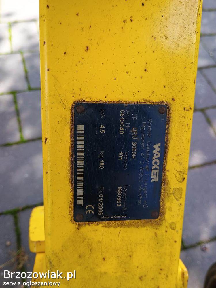 Posiadam do sprzedania profesjonalna 180 kg zagęszczarkę z rewersem renomowanej firmy wacker dpu 3060 z silnikiem diesla 1B30 stan bdb gotowa do pracy więcej pod numerem 696-955-028