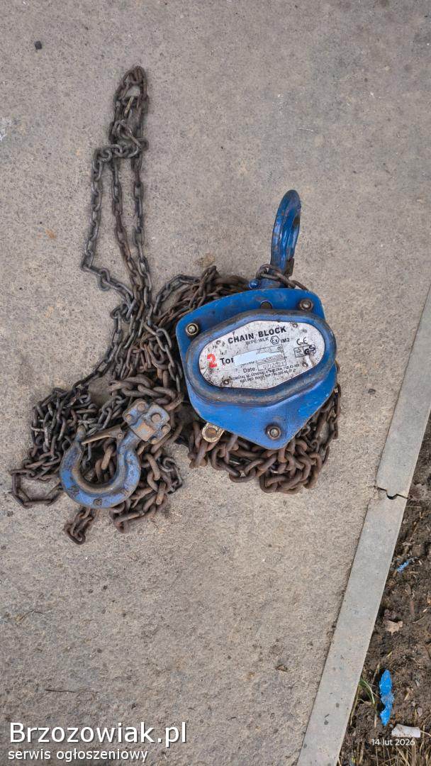 NozdrzecRęczna wciągarka łańcuchowa o udźwigu 2 tony i długości łańcucha 3 metry. Urządzenie jest używane, ale w dobrym stanie technicznym. Świetnie nadaje się do zasto