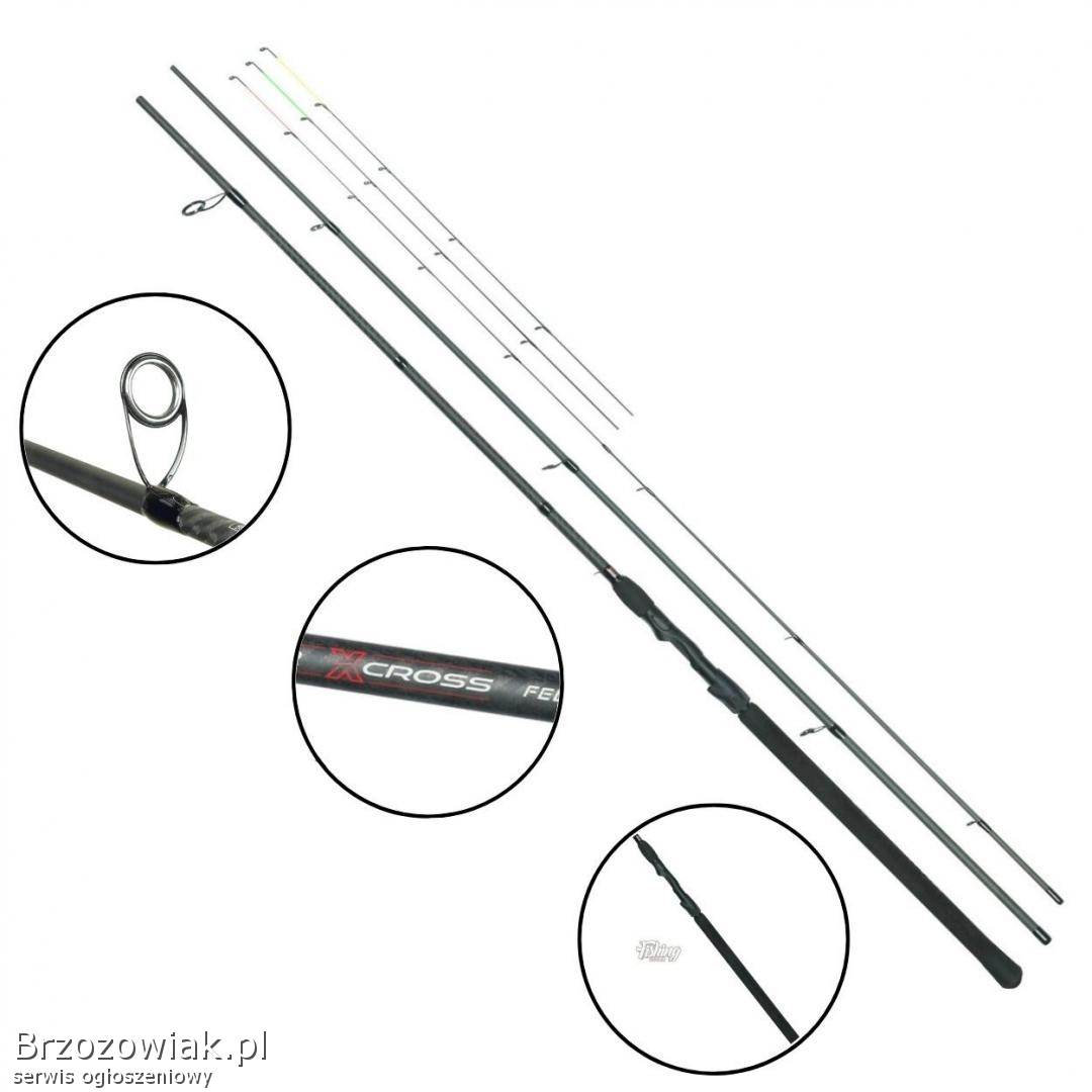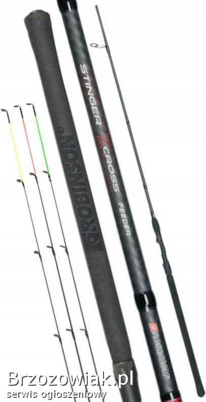 Stinger X-CROSS Feeder to seria dziesięciu modeli feederów, zaprojektowanych do łowienia z koszyczkiem zanętowym. Doskonale sprawdzą się zarówno na wodach stojących, jak i płynących, nawet o dużym uciągu. Wędziska są szybkie, mocne i polecane do połowów wszelkich gatunków białej ryby. W komplecie znajduje się jedna szczytówka szklana i dwie z włókna węglowego, co pozwala na dopasowanie wędziska do indywidualnych potrzeb.