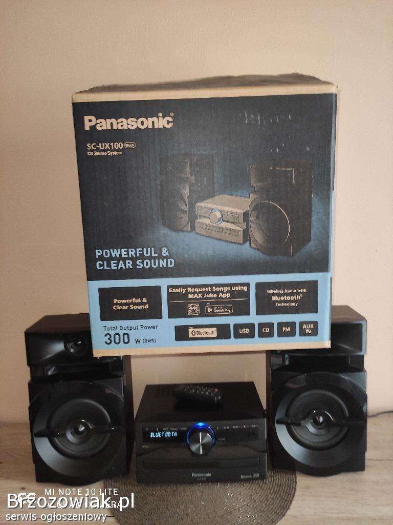 SPRZEDAM WIEŻA Panasonic sc ux100+Pilot Panasonic SC-UX100 zestaw Power Audio (300W, 13cm głośnik niskotonowy, Bluetooth, CD, USB, FM, aplikacja MAX Juke, Loca