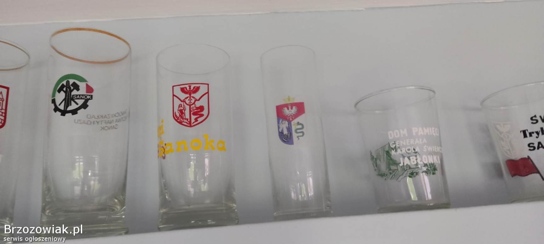 Szklanki szkło Sanok, Brzozów, Uherce i okolice Stare szklanki z okresu PRL związane z miasta Sanok oraz okolice. Cena po 15 zł. za szklankę Odbiór w Sano