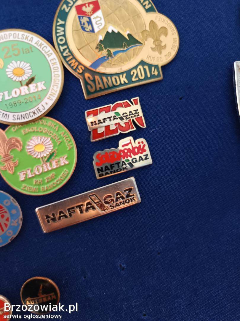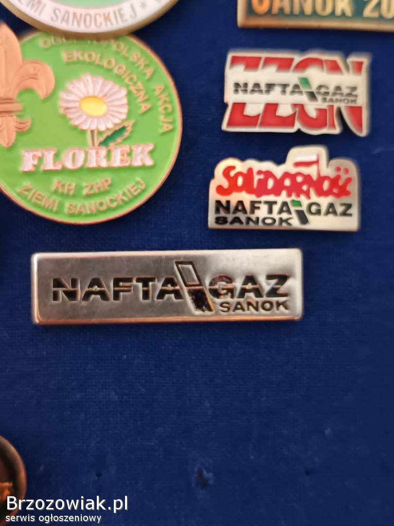 Wpinki z napisem Nafta Gaz oraz związki zawodowe, różne kolory oraz wzory 30 zł.