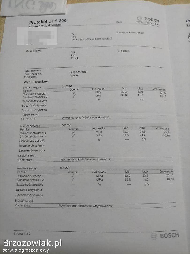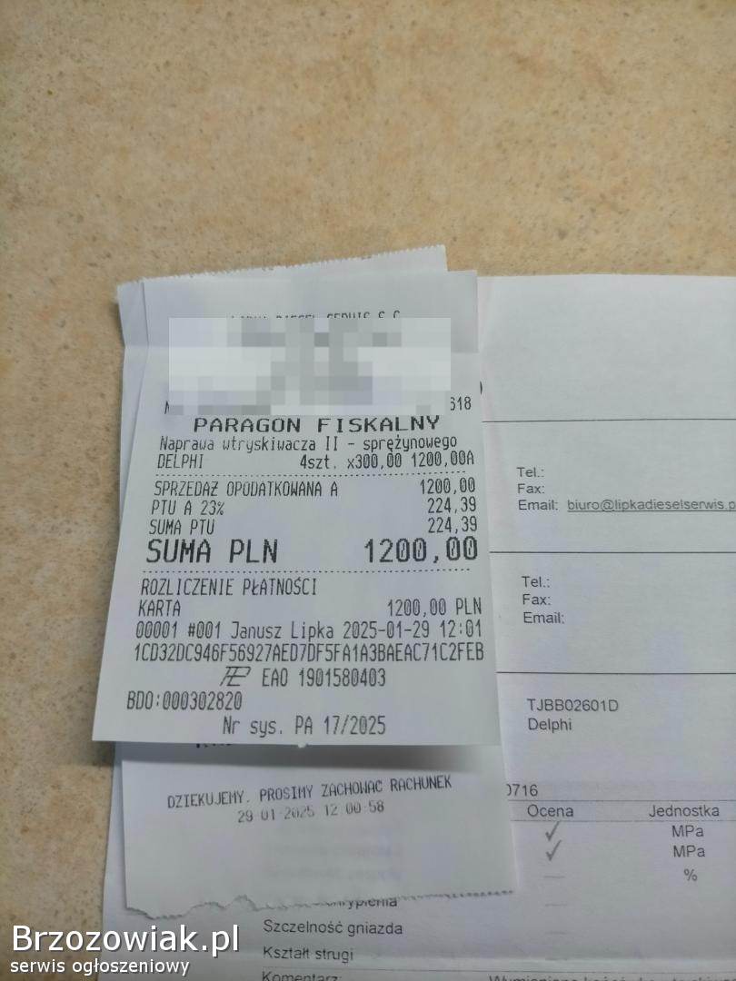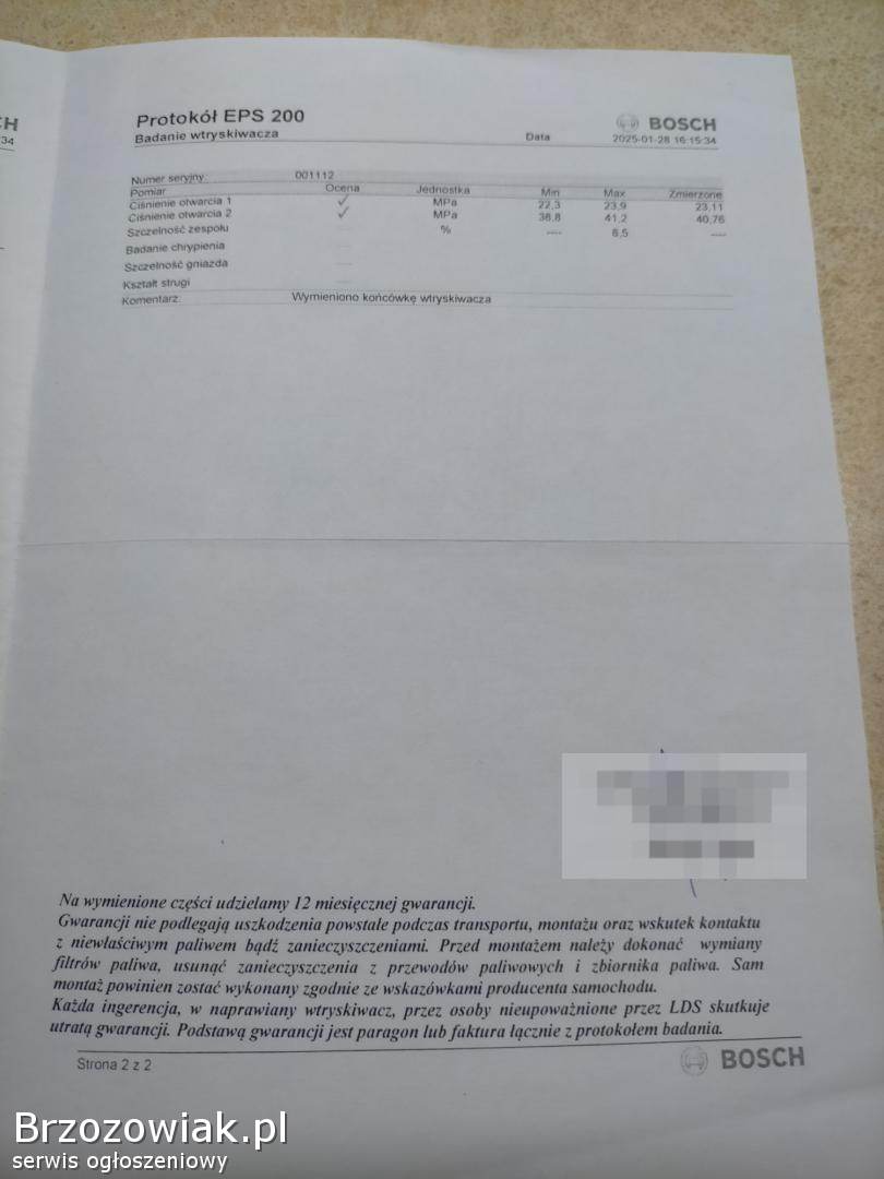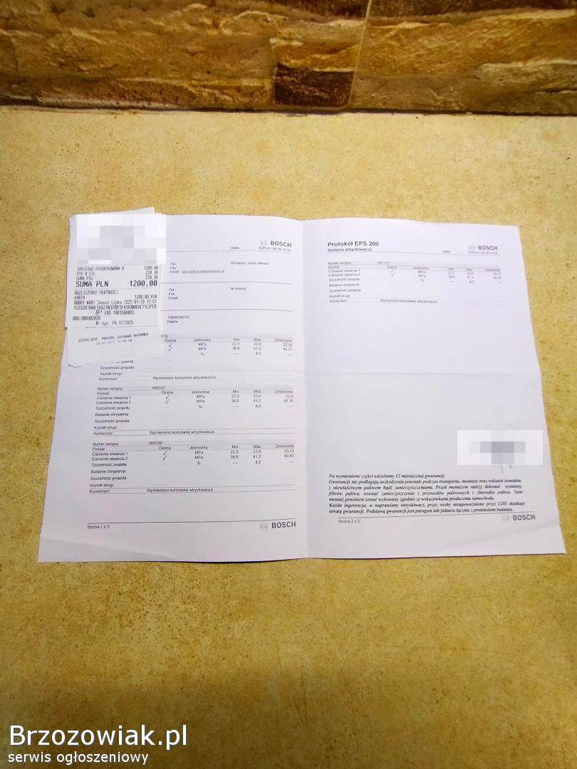 Sprzedam 4 wtryski. Wtryski były regenerowane w styczniu tego roku po montażu przejechały 3 000 km jak widać na zdjęciach protokołu badania wtryskiwaczy. Sprzedaję bo już nie mam tego samochodu. Komplet 800 zł odbiór osobisty lub wyślę po przedpłacie. Sprzedaje komplet nie sprzedaję pojedynczych sztuk.