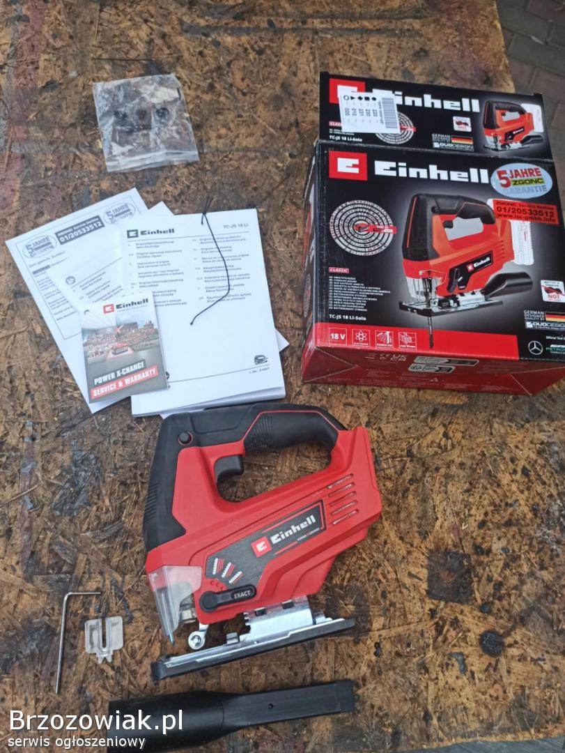 Używana, powystawowa wyrzynarka Einhell TC-JS 18 Li. Sprzęt sprawny w oryginalnym opakowaniu.