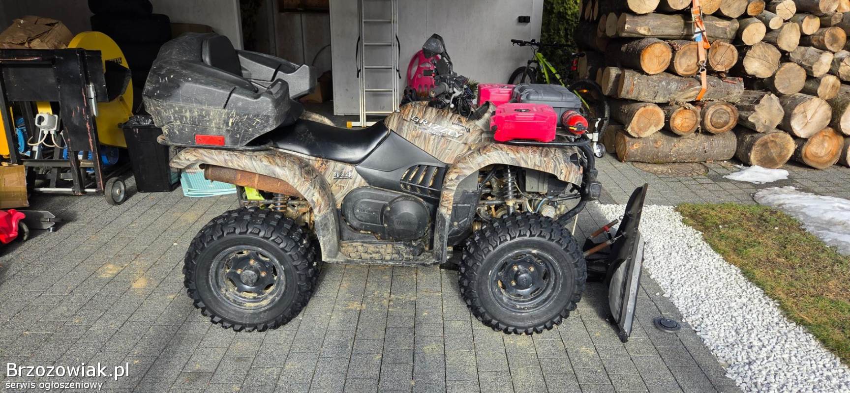 Sprzedaję z kufrem i pługiem + dodatkowy kpl. kół z oponami ITP 27” widoczne na trzech ostatnich zdjęciach. Obecnie quad stoi na kołach z oponami Maxxis All Trak 25”.