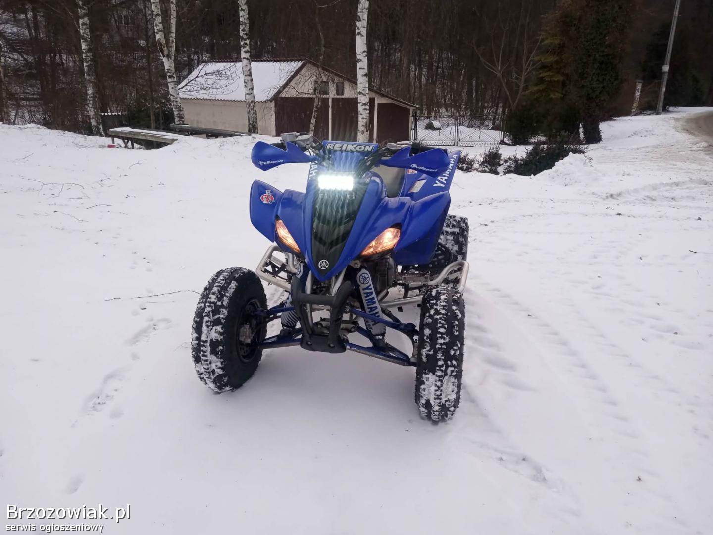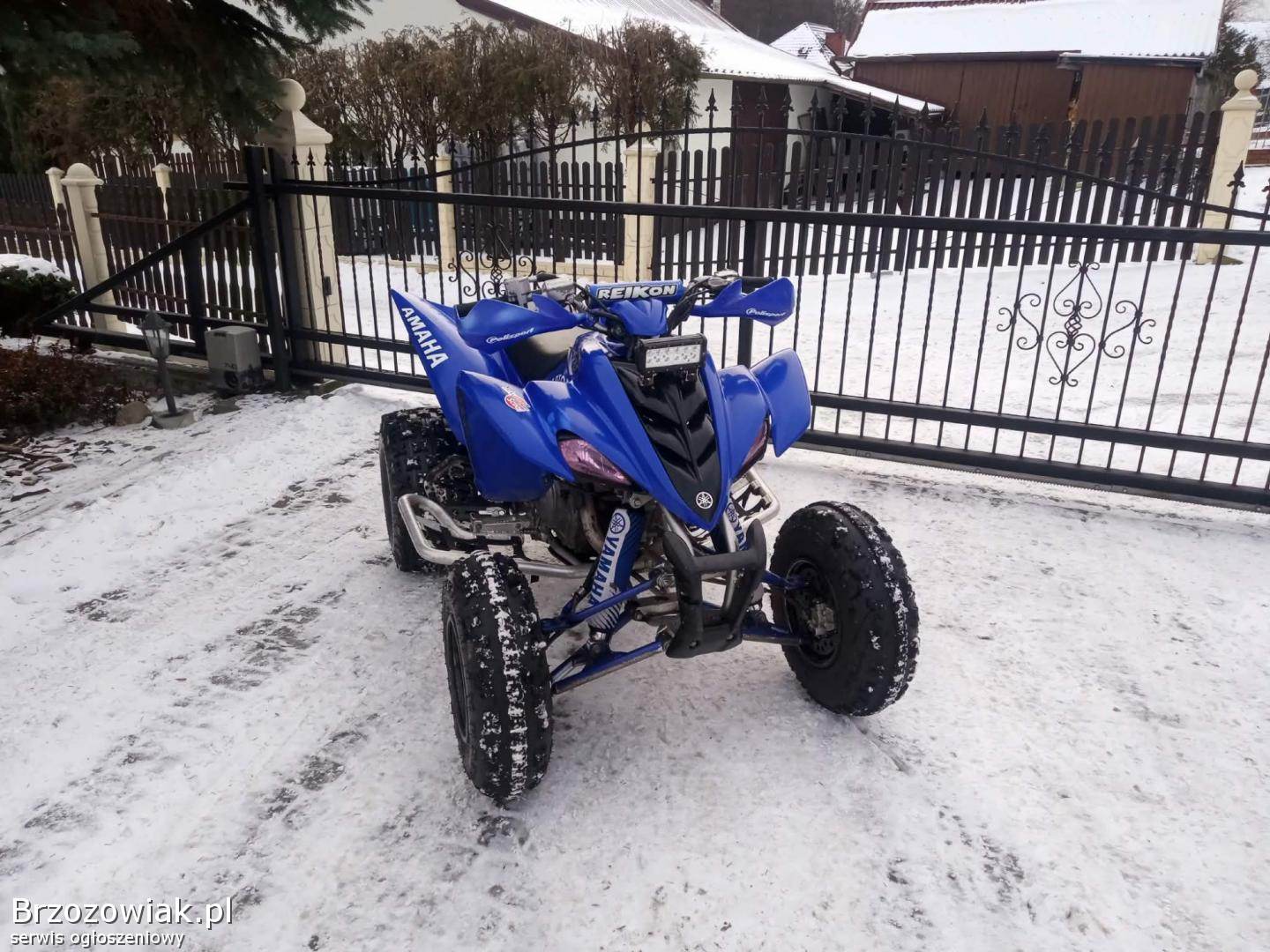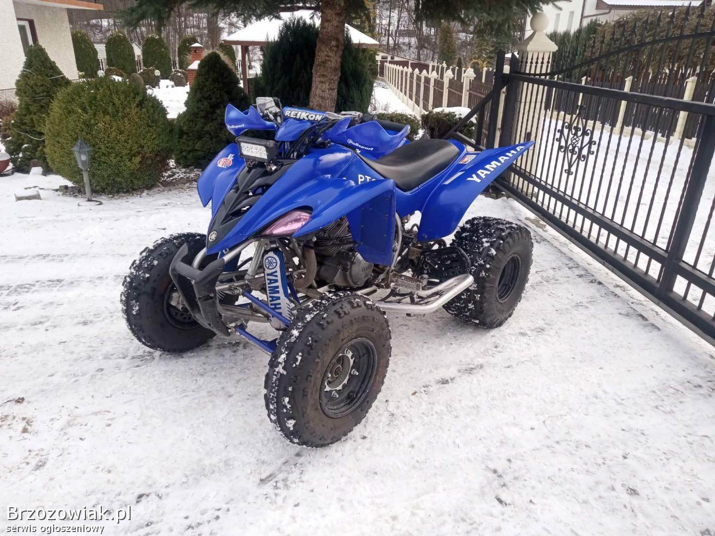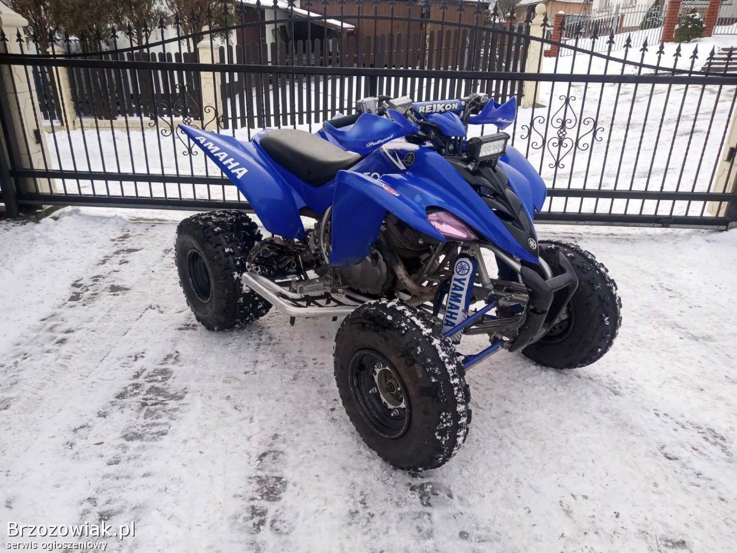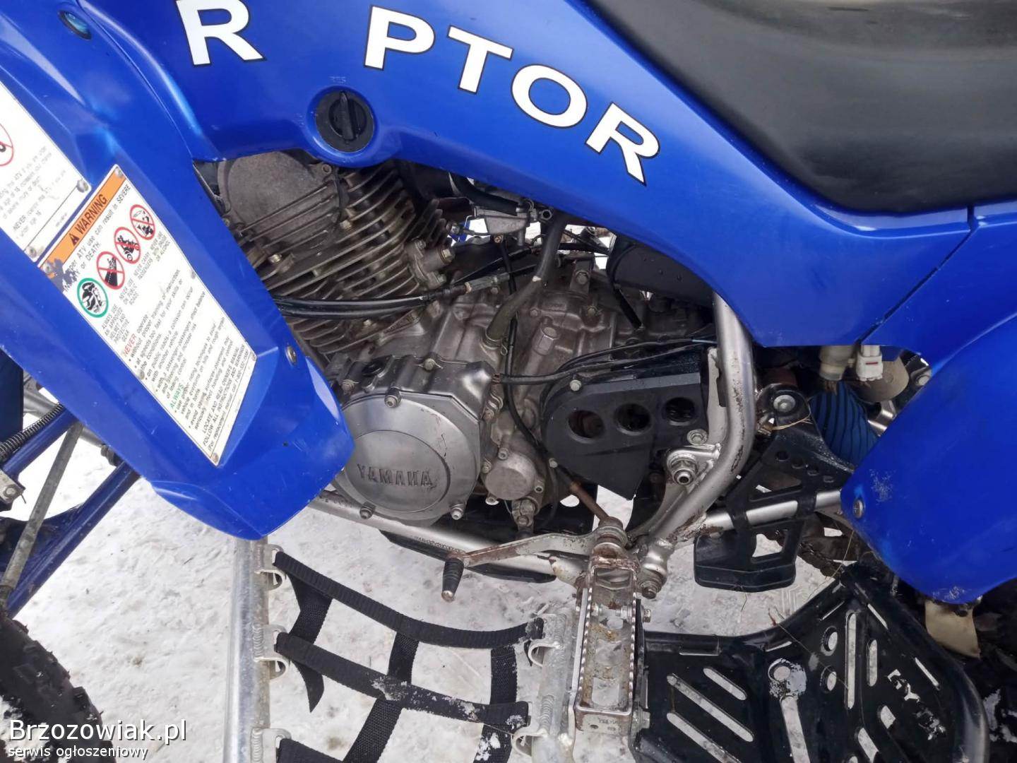 Yamaha Raptor 350 bez homologacji w bardzo ładnym stanie silnik odpala na dotyk ma moc skrzynia biegów manualna 6+R zawieszenie bez luzów pewnie się prowadzi. Quad nie zmęczony wszystkie wymiany robione na bieżąco.