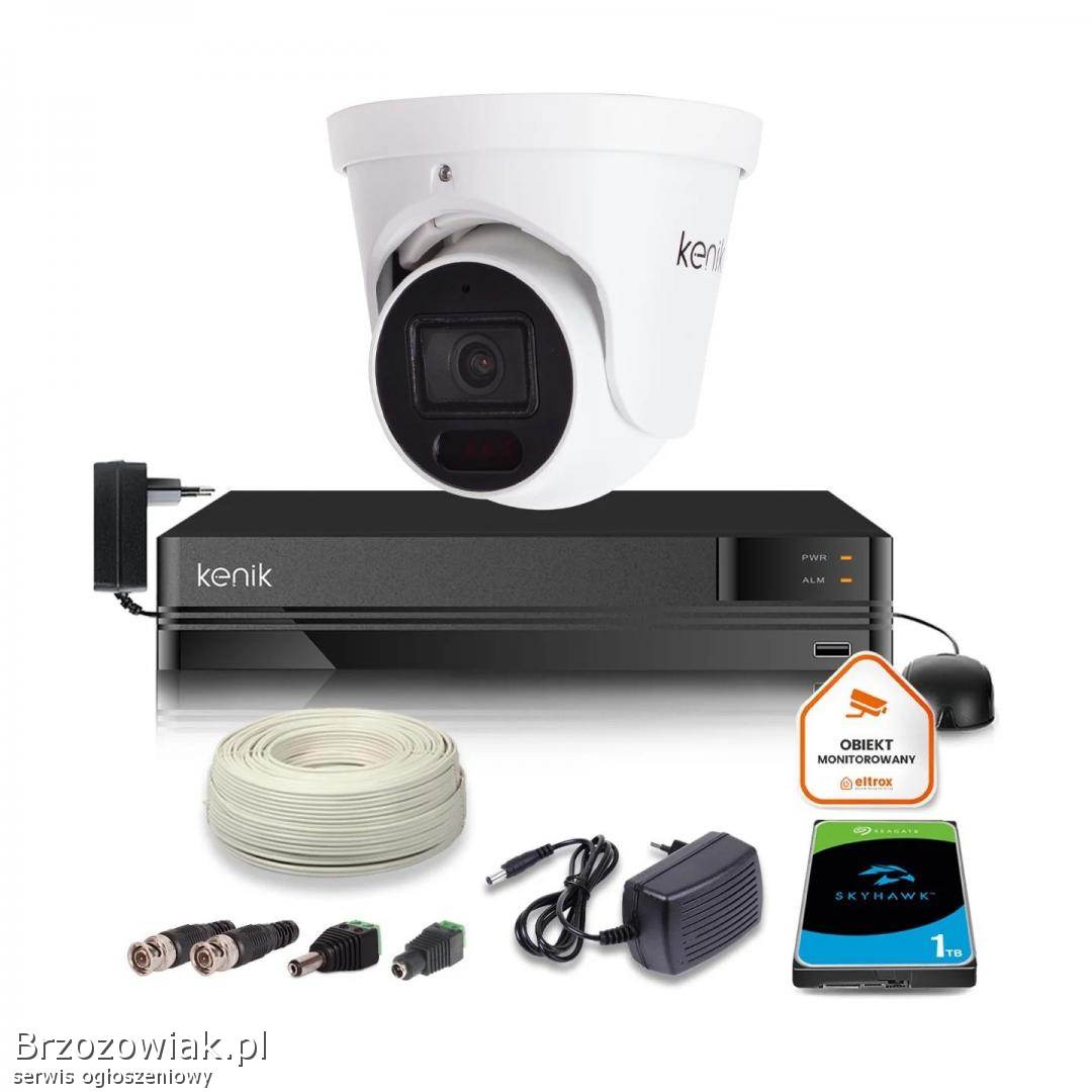 Zestaw oparty o sprzęt marki Kenik, oferujący obraz w jakości fullHD jak również nagrywanie dźwięku. Kamera przeznaczona do zastosowań zewnętrznych jak i wewnętrznych np. monitoring domu, sklepu. Gwarantowany zapis nagrań aż 14 dni. Dzięki diodom IR, kamera w całkowitej ciemności nadzoruje obszar do 30m. Zestaw z możliwością rozbudowy o 2 kamery analogowe i 2 kamery IP.