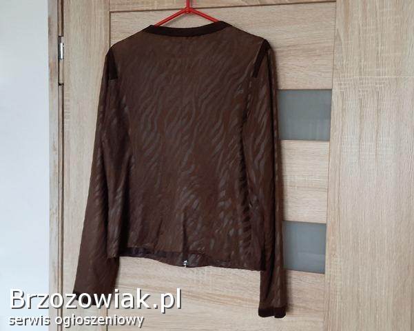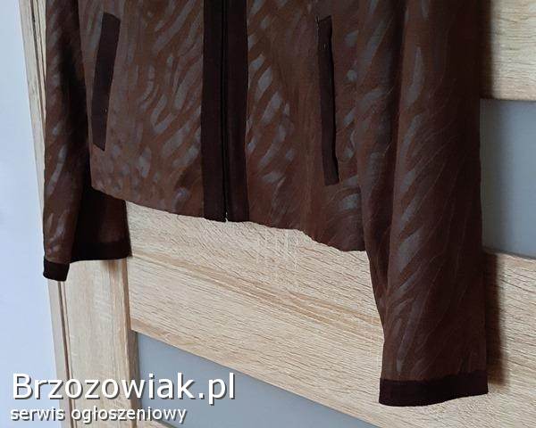 Do sprzedania elegancki ŻAKIET brązowy z cieniutkiego zamszu, z delikatnym przyjemnym w dotyku meszkiem (stanowiącym jednocześnie charakterystyczną fakturę żakietu), długi rękaw, na doskonałej jakości podszewce, zapinany na suwak na całej długości, leciutko taliowany, 2 kieszenie wewnętrzne, na doskonałej podszewce. Przybliżone wymiary: długość całkowita 45 cm, długość rękawa 61 cm, obwód biustu 100 cm. Stan bardzo dobry – zdjęcia. Świetny dodatek do eleganckiej stylizacji. Cena 40 zł. + 5 zł. koszty wysyłki.