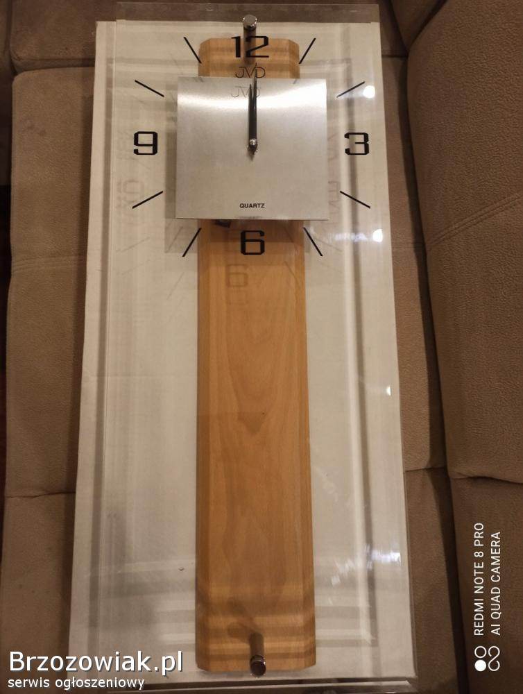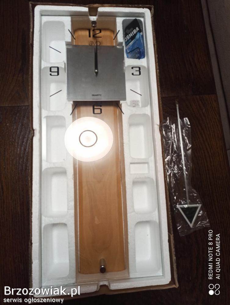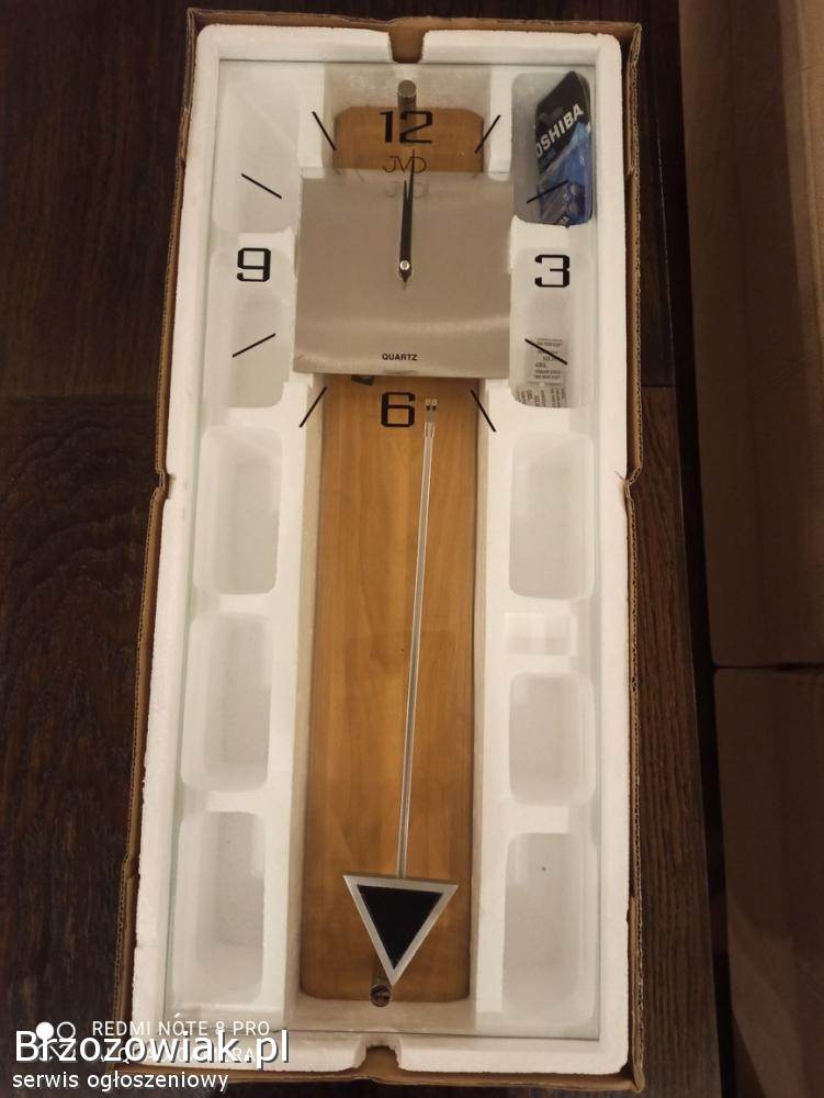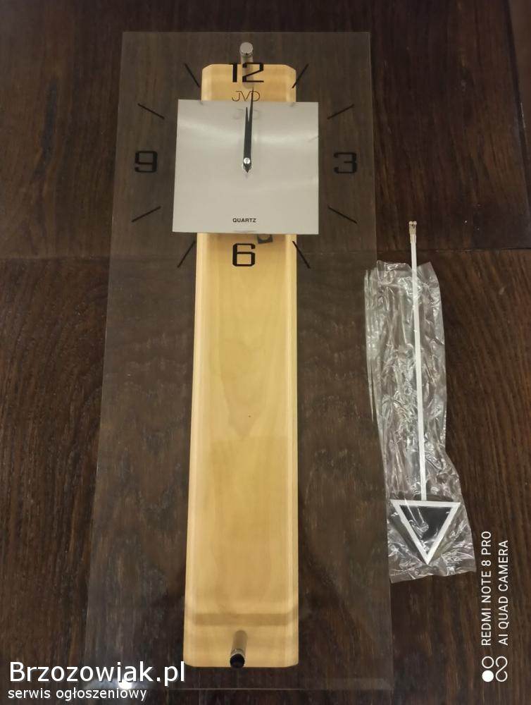 Sprzedam nowoczesny zegar kwarcowy z wahadłem. Stan nowy w oryginalnym opakowaniu. Idealny na prezent. Wykonany z drewna, fazowanego szkła i tworzywa sztucznego. Zasilany z baterii. Producent JVD.
