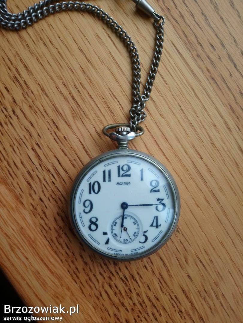 Sprzedam klasyczny zegarek kieszonkowy Molnija z czasów ZSRR. Oryginalny egzemplarz, produkcja radziecka (Made in USSR). Zegarek na łańcuszku, w stylu retro/vintage.