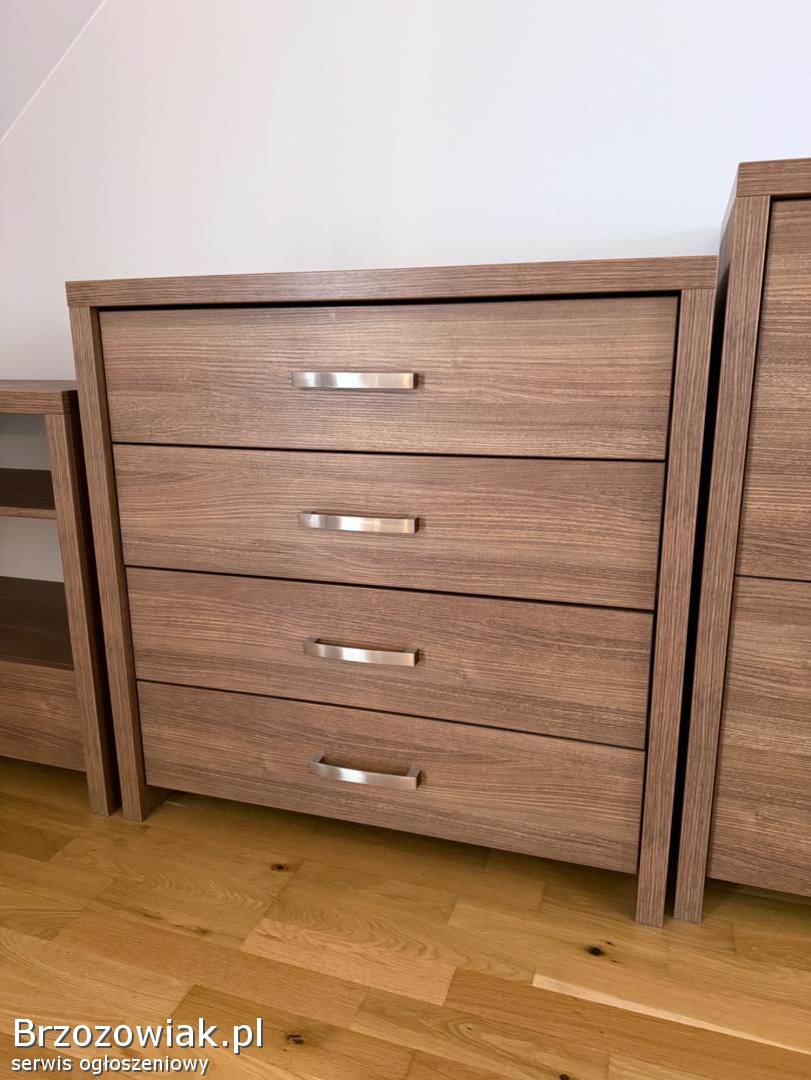 Sprzedam zestaw mocnych i przestronnych mebli do sypialni wykonanych z dwuwarstwowej płyty meblowej o wysokiej trwałości. Meble są w bardzo dobrym stanie, idealne do klasycznej i nowoczesnej aranżacji.