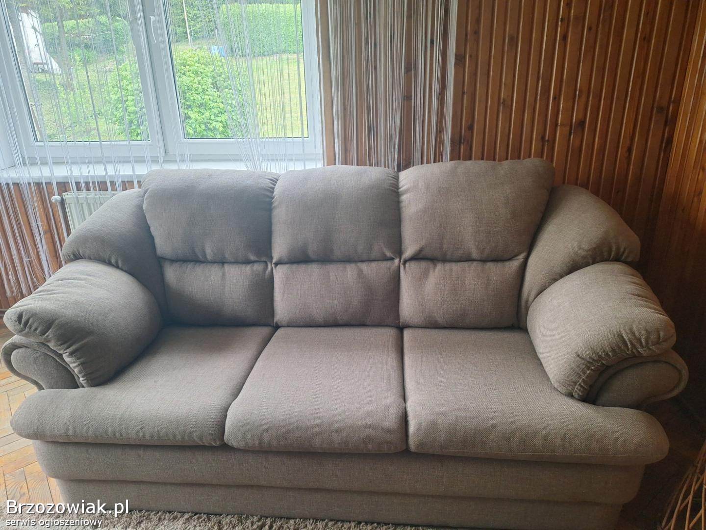 Posiadam na sprzedaż zestaw wypoczynkowy: sofa i dwa fotele. Stan dobry, rzadko używany, kolor beżowy/jasny brąz. Wymiary: