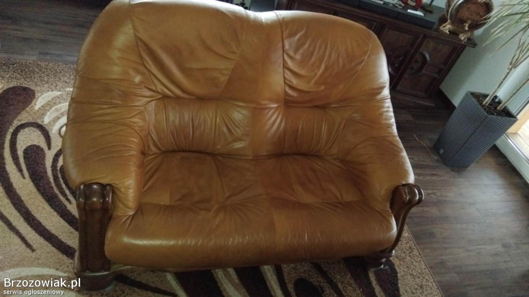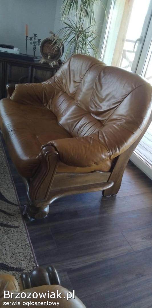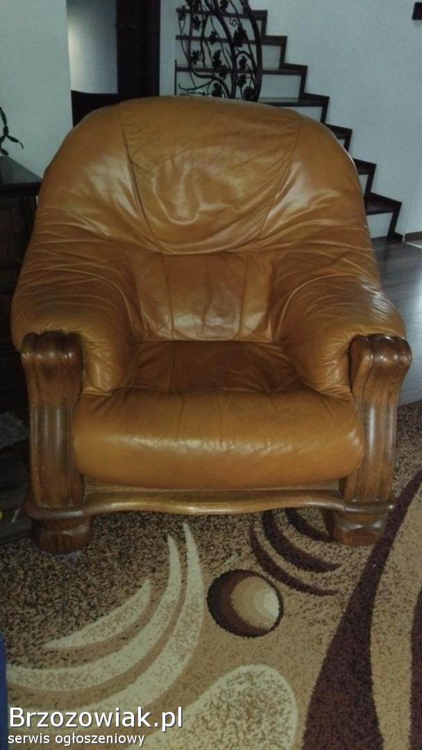 Do sprzedania komplet wypoczynkowy dębowy, skórzany w bardzo dobrym stanie 3+2+1.